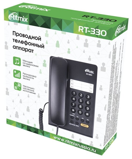 Телефон RITMIX RT-330 black, быстрый набор 3 номеров, мелодия удержания, черный, 15118350, 1 набор в компл. 2 137 ₽