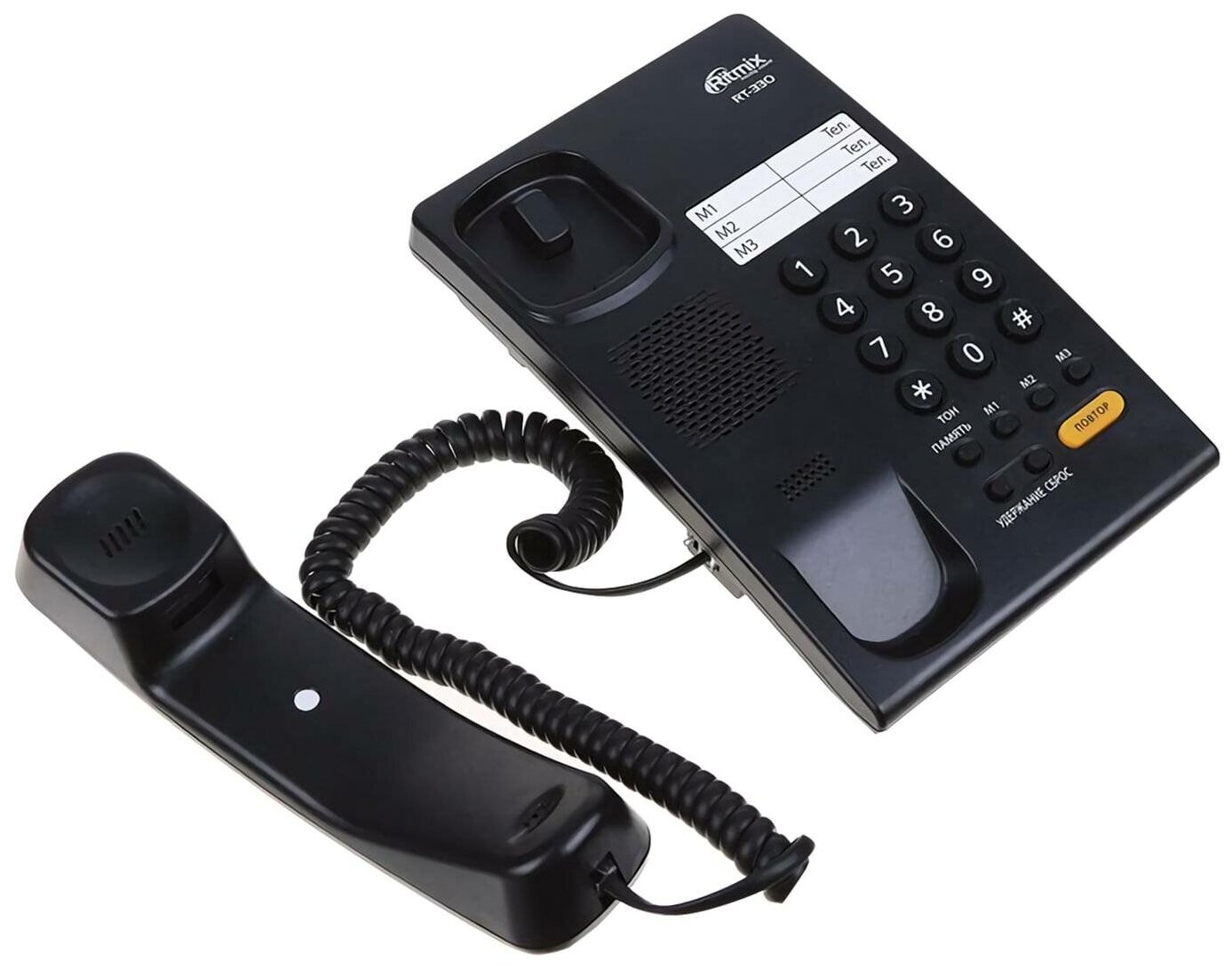 Телефон RITMIX RT-330 black, быстрый набор 3 номеров, мелодия удержания, черный, 15118350, 262837 1 299 ₽