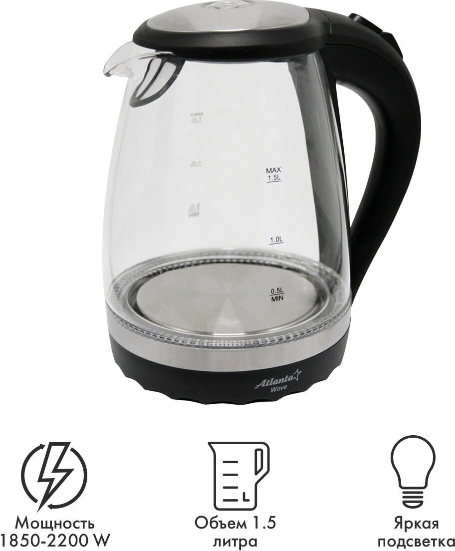 Чайник стеклянный электрический, ATH-2463, Atlanta 3 783 ₽
