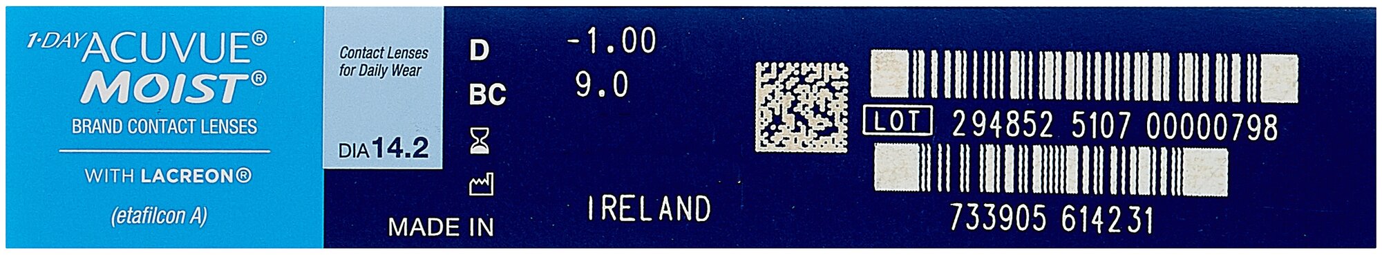 Контактные линзы ACUVUE, 1 Day Acuvue Moist, однодневные, -9,50 / 14,2 / 8,5 / 90 шт.