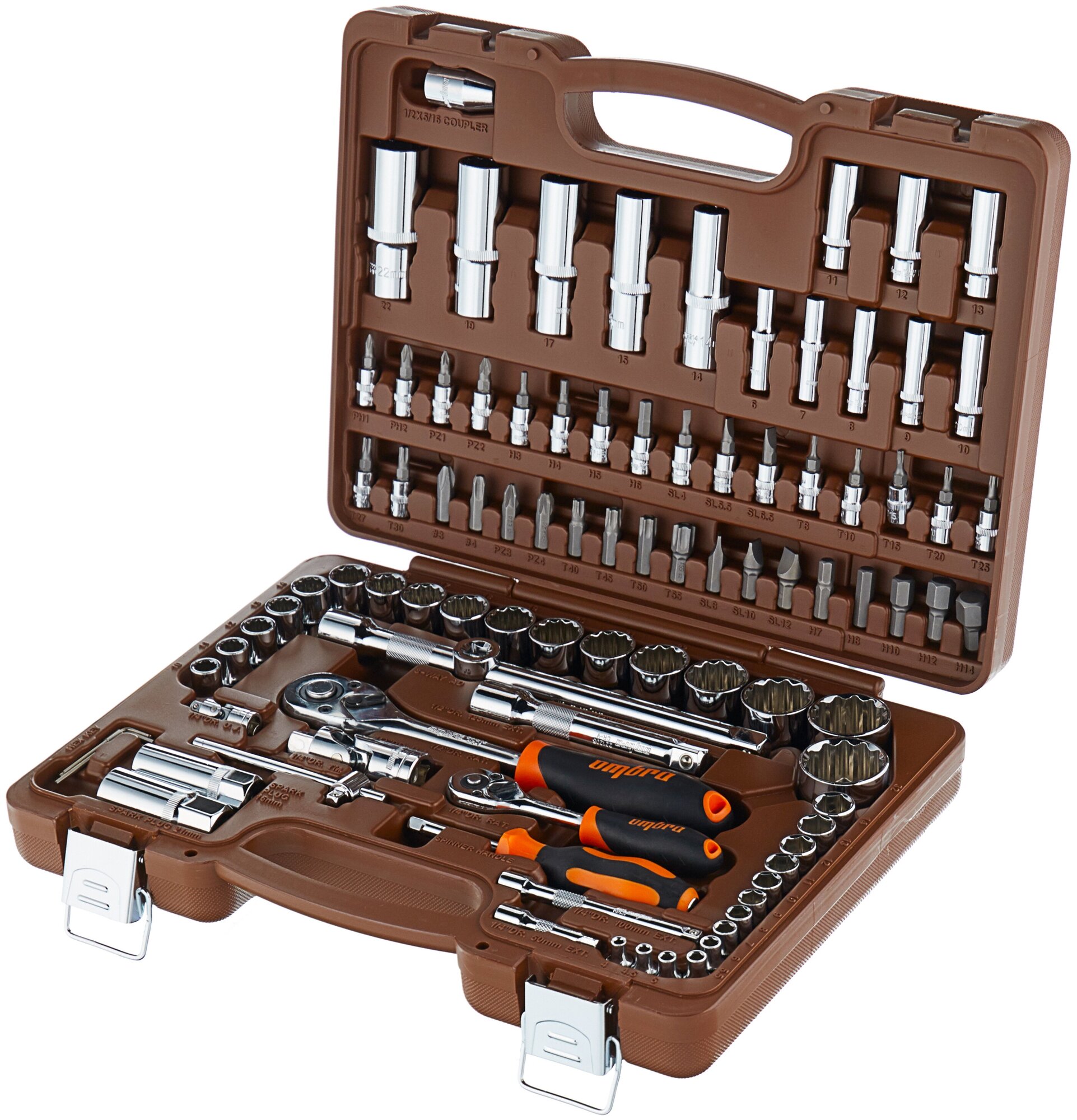 OMBRA OMT94S12 Универсальный набор инструмента торцевые головки 1/4 и 1/2DR 4-32 мм. с 12-гранными головка