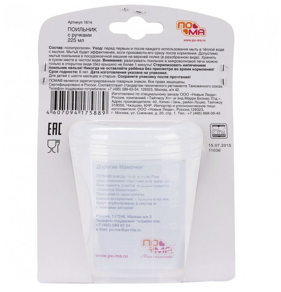 Отзывы на Пома Поильник с ручками 225 мл. (полипропилен) 1 шт. 6+ (белый)