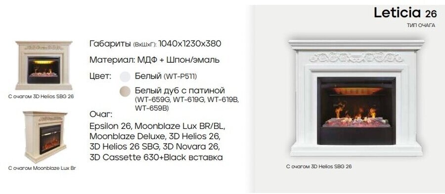 Электрокамин Leticia 26 WT с очагом Epsilon 26 S IR 149 480 ₽
