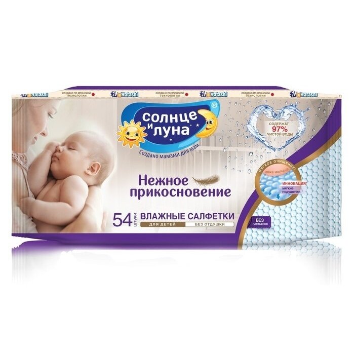 Солнце И луна нежное прикосновение Влажные салфетки детские 0+ 54 шт информация: