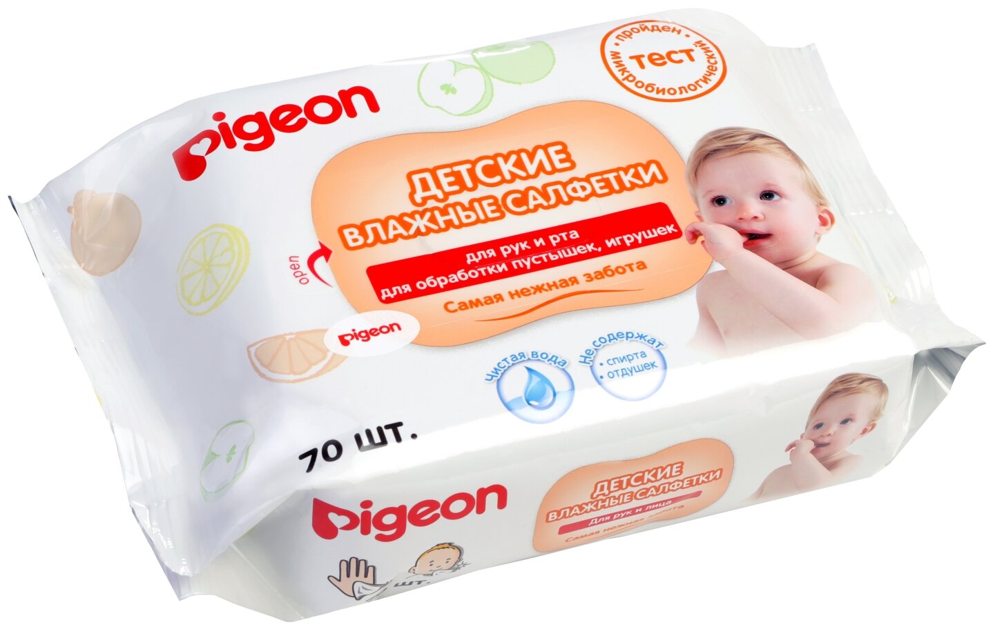 PIGEON Baby Салфетки 70шт влажные детские для рук и рта