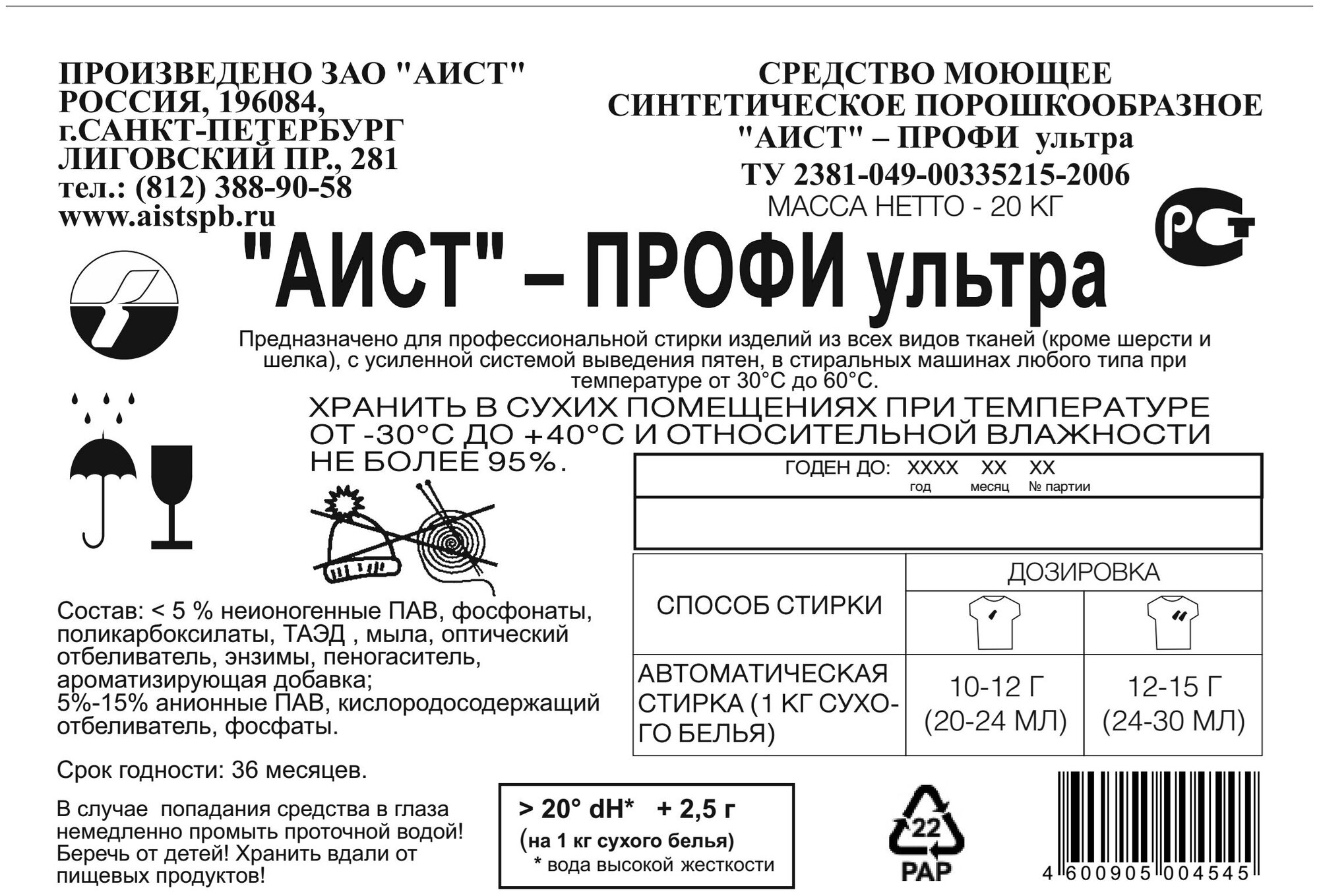 Стиральный порошок Аист Профи ультра, 20 кг (4301020058) информация: