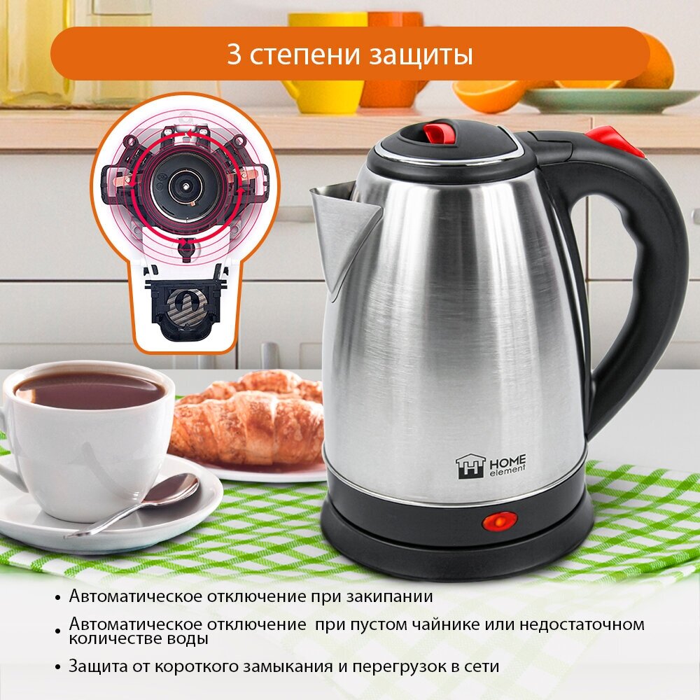HOME ELEMENT Чайник электрический HOME ELEMENT HE-KT180 1500 Вт серебристый чёрный 2 л нержавеющая сталь