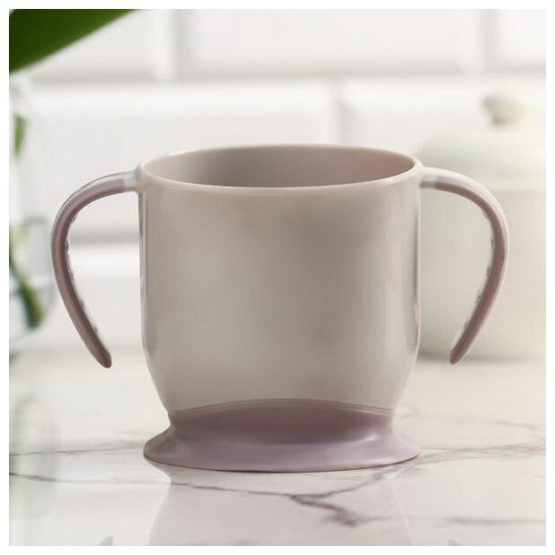 15022, Кружка детская на присоске Happy Baby, кружка детская пластик, с ручками, полипропилен, серая