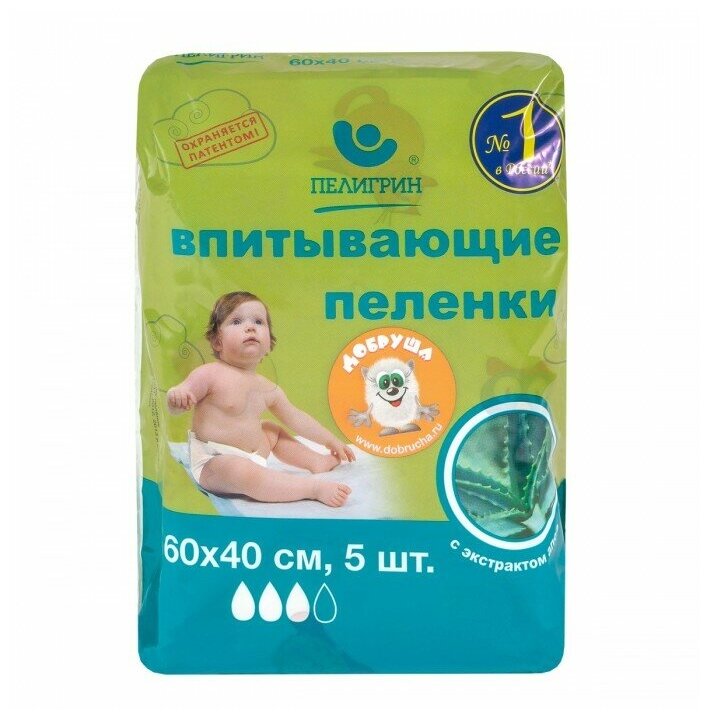 Пеленки впитывающие, одноразовые для детей, 60х40 5 шт. алоэ 2134049 информация:
