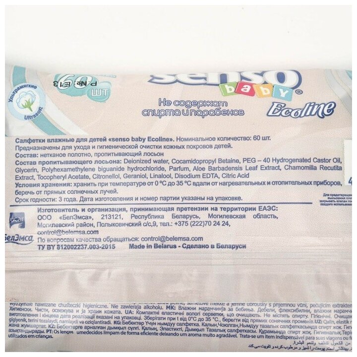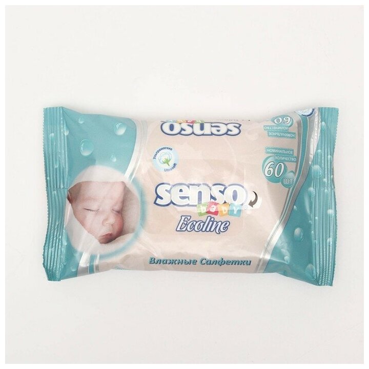 Салфетки влажные для детей, с маркировкой "SENSO BABY ECOLINE". 60 шт информация: