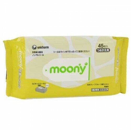 10 цен на Детские влажные антибактериальные салфетки Moony, сменный блок, 45 шт.