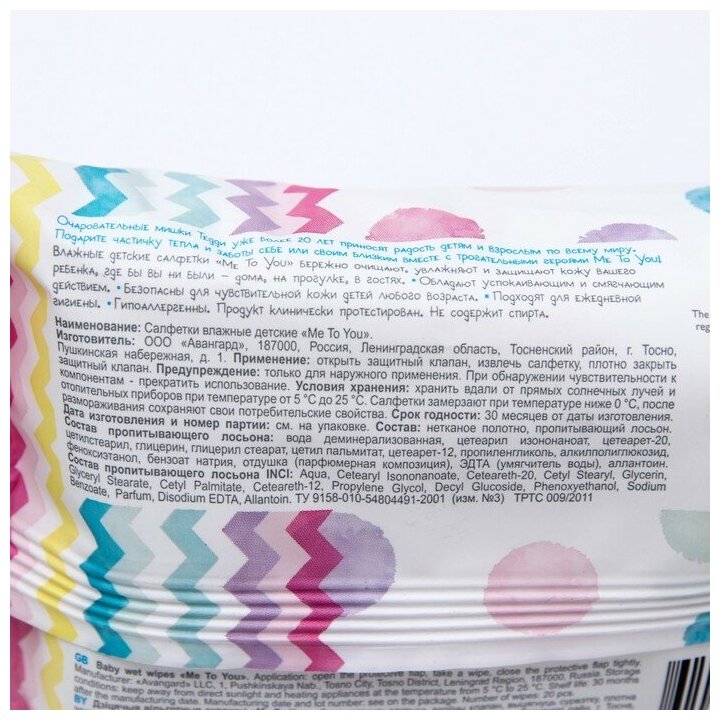 Салфетки влажные "Me to You" детские (20 шт.) информация: