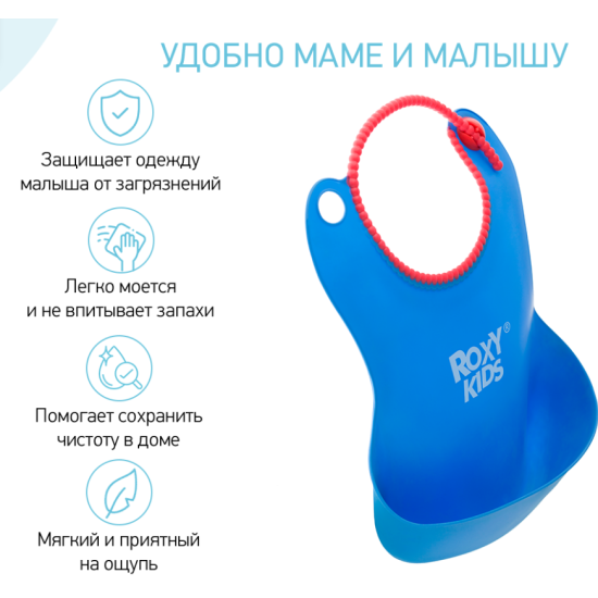 10 цен на Нагрудник мягкий ROXY-KIDS RB-401-B с кармашком и застежкой синий