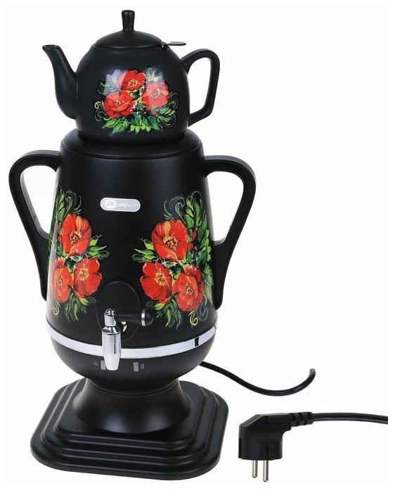 Самовар "Добрыня" DO-423, пластик, 4 л, 1850 Вт, черный с цветами 10 401 ₽