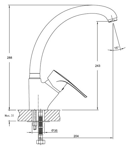 | Длина излива | 205 мм |