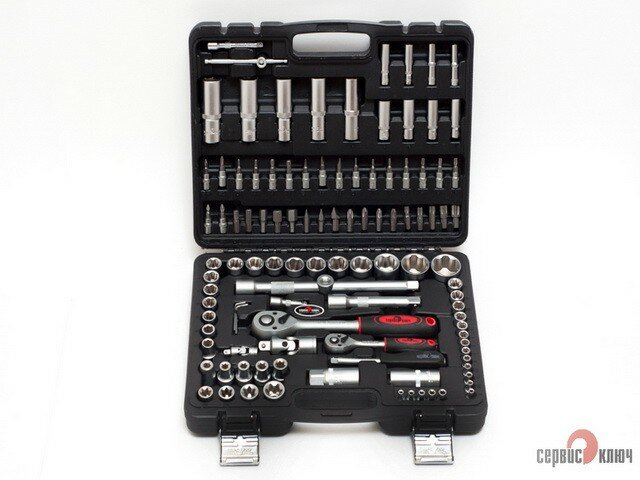 | Головки торцевые подробно | 1/2": 10, 11, 12, 13, 14, 15, 16, 17, 18, 19, 20, 21, 22, 23, 24, 27, 30, 32 мм; трещотка 1/2"; вороток т-образный 1/2"; вороток с шарниром 1/2"; удлинитель 1/2": 125, 250 мм |