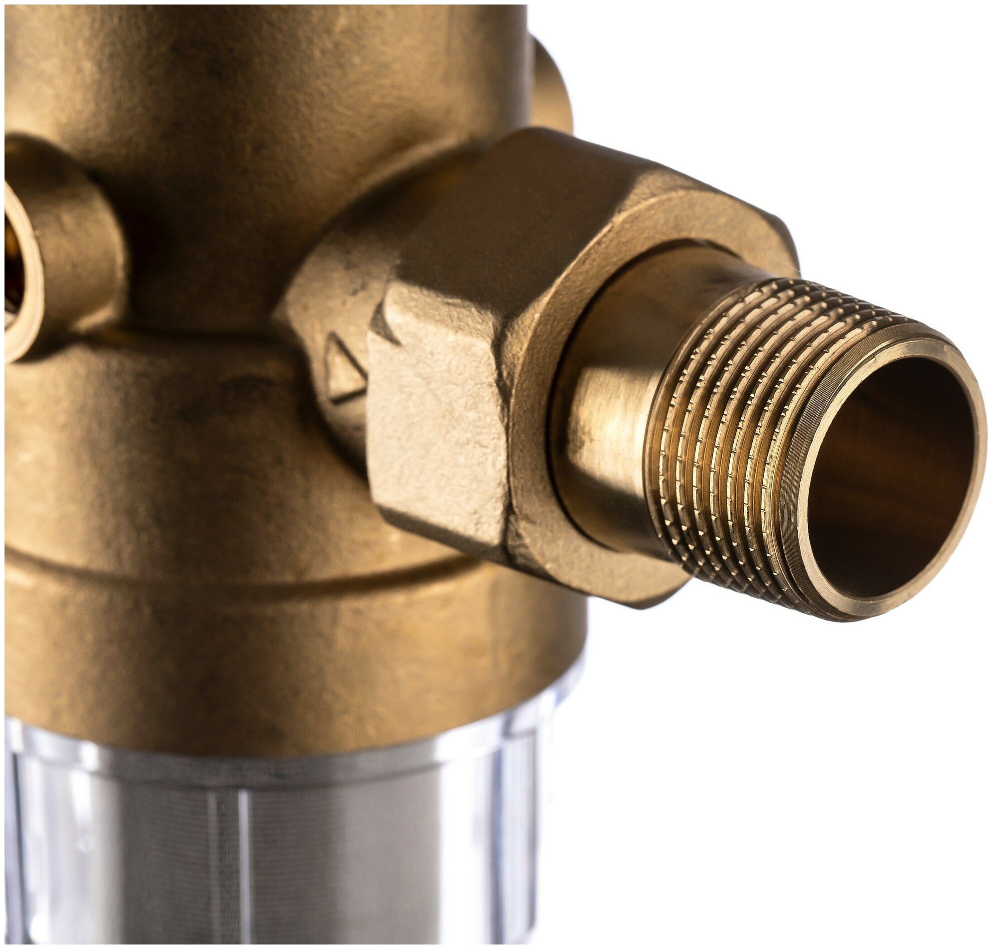 Фильтр механической очистки Гейзер Бастион 7508205233 3/4 муфтовый (НР/НР), латунь, со сливом, с манометром латунь Ду 20 (3/4")