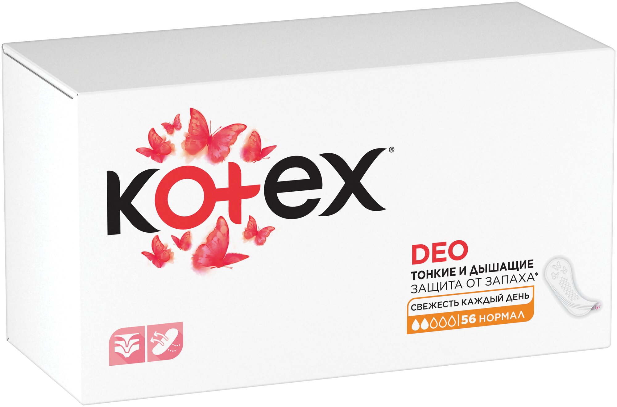Ежедневные прокладки Kotex Deo Normal 2 капель 56 шт информация: