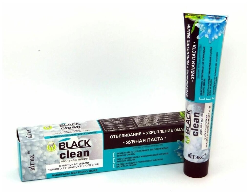 Зубная паста Витэкс Black clean отбеливание+укрепление эмали с микрочастицами черного активированного угля и минералами Мертвого моря, 85 мл, 85 г информация: