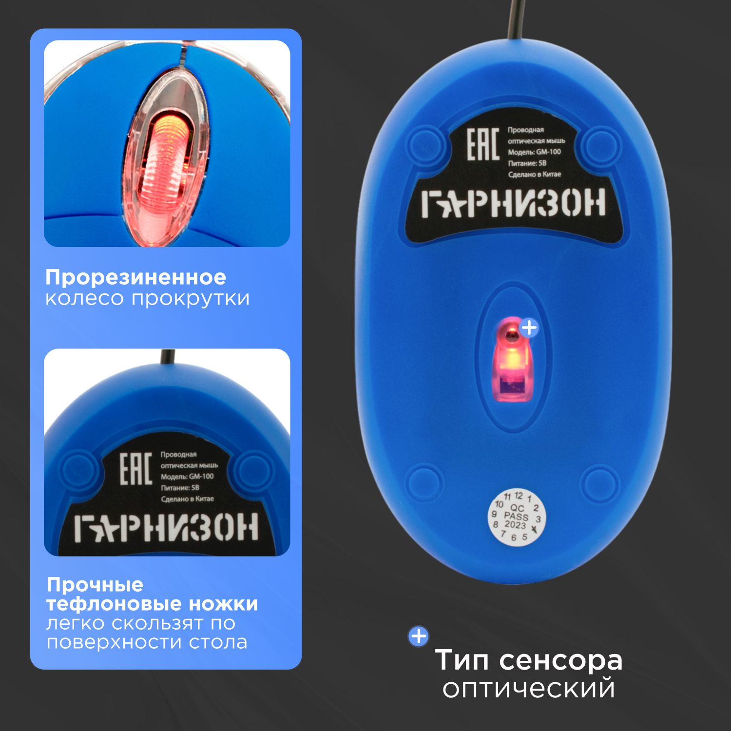 Мышь Гарнизон GM-100B (USB) синий 293 ₽