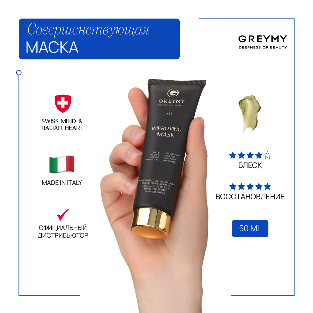 GREYMY Профессиональная маска для волос совершенствующая Improving Mask, восстановление и питание волос 50 ml информация: