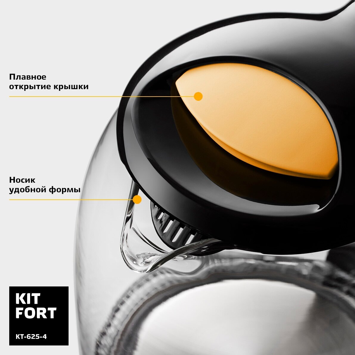10 цен на Чайник электрический KITFORT КТ-625-4, 2200Вт, черный и желтый