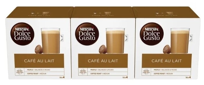 Кофе в капсулах Nescafe Dolce Gusto Cafe Au Lait, 48 капсул (3 уп х 16 шт)