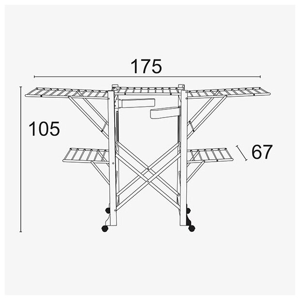 Сушилка для белья /вешалка для одежды напольная, 129х61х61, складная, 2 уровня, цвет серый