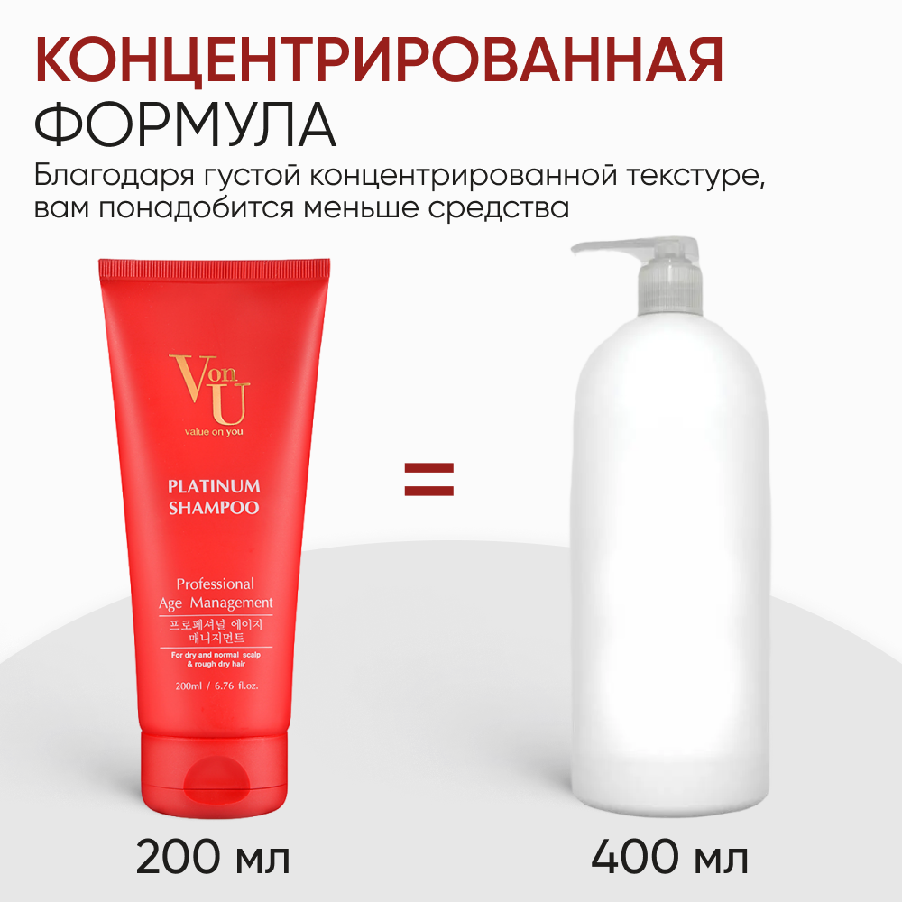 10 цен на Шампунь для волос корейский с платиной Platinum Shampoo Von-U 200 мл
