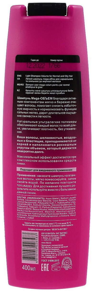 Белита Витекс LUX Volume Легкий шампунь Mega-объем для нормальных и склонных к жирности волос