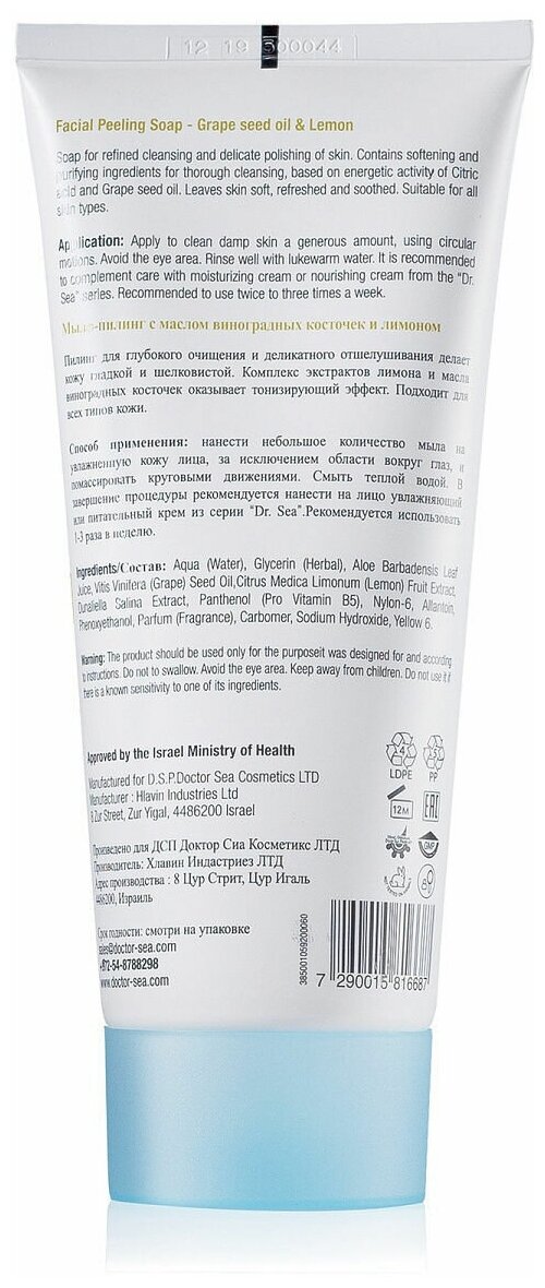 Dr. Sea мыло-пилинг для лица Facial Peeling Soap с маслом виноградных косточек и экстрактом лимона, 200 мл