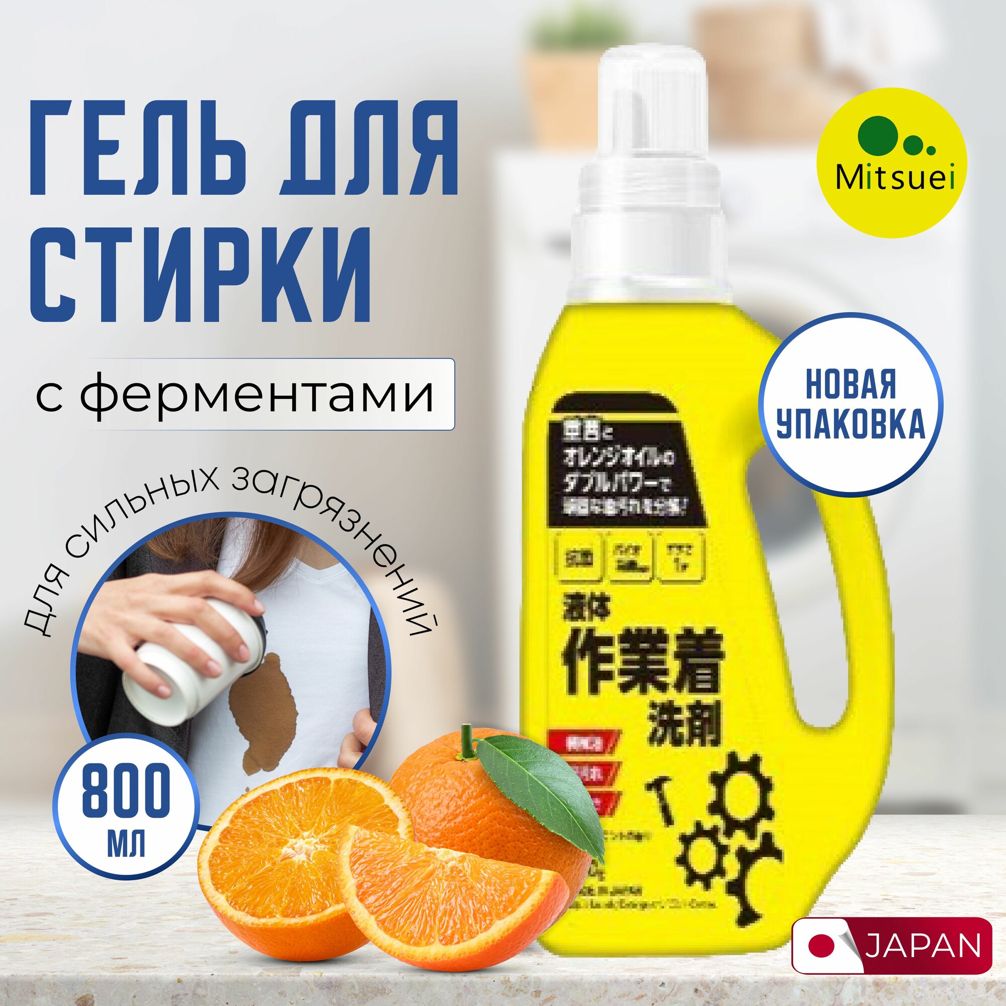 Mitsuei Гель для стирки рабочей одежды с мощными ферментами дезодорирующий 800 мл информация: