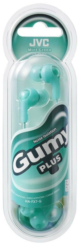 JVC Гарнитура внутриканальная проводная, модель HA-FX7M-GN-U, серия Gumy Plus. Цвет: зеленый 1 233 ₽