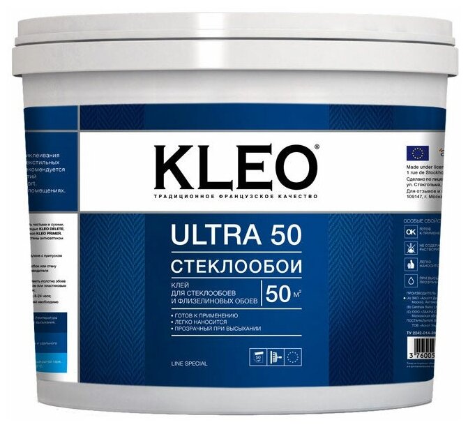 Клей для стеклообоев и стеклохолстов KLEO ULTRA Готовый 10 кг информация: