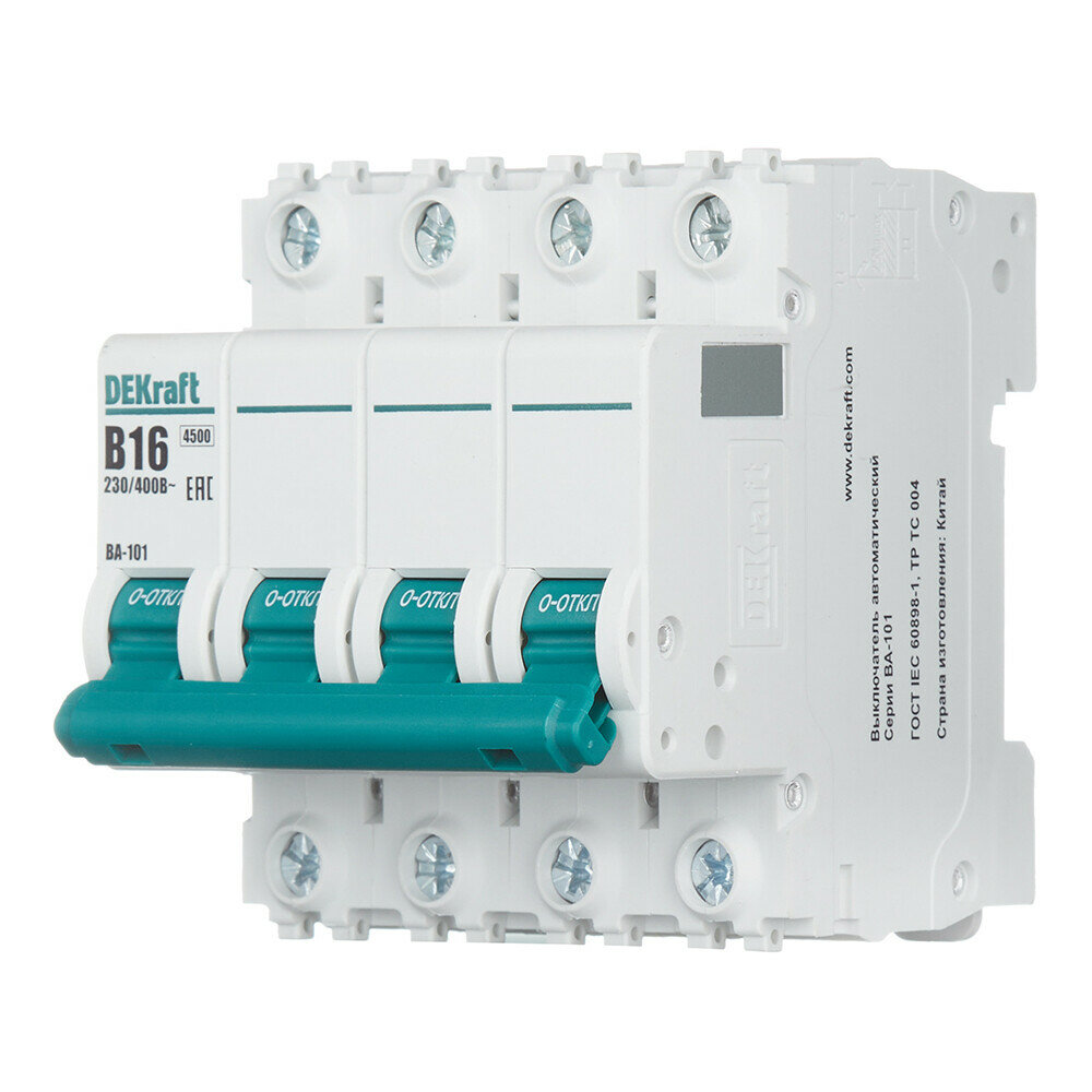 DEKraft ВА-101 Автоматический выключатель 4Р 16А (B) 4,5кА, арт.11042DEK
