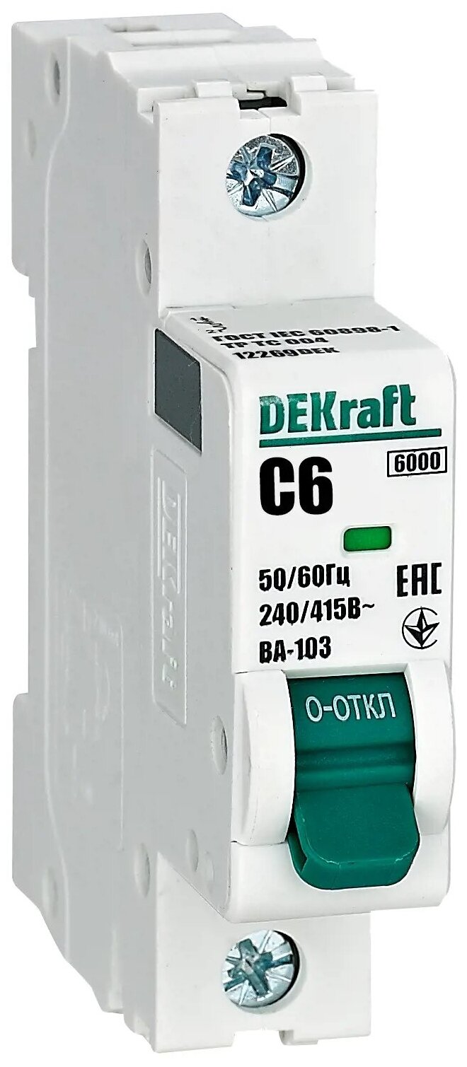 Автоматический выключатель DEKraft ВА-103 1P 6А характеристика C информация: