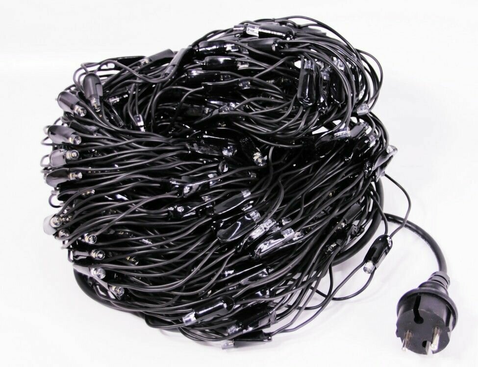 Гирлянда уличная Бахрома 50м / Гирлянда светодиодная, питание от сети 220В, черный провод, белый свет