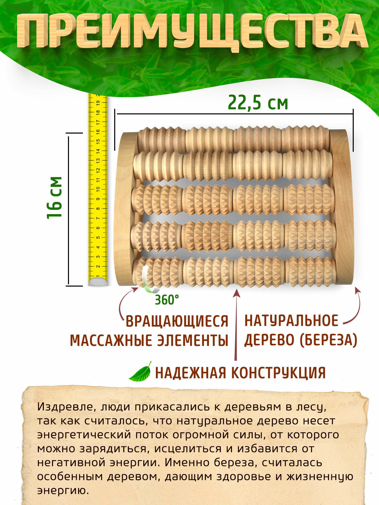 Массажер деревянный из березы для ног, стоп и спины. Массажер тимбэ зубчатый, механический, антицеллюлитный