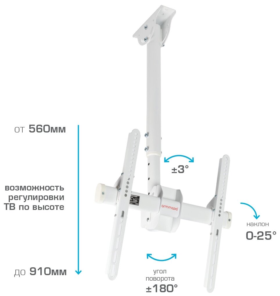 Отзывы на Кронштейн для телевизора потолочный Arm Media LCD-1800 / до 65 дюймов / до 50 кг / vesa 400x400 / наклонно-поворотное крепление для тв / держатель для телевизора