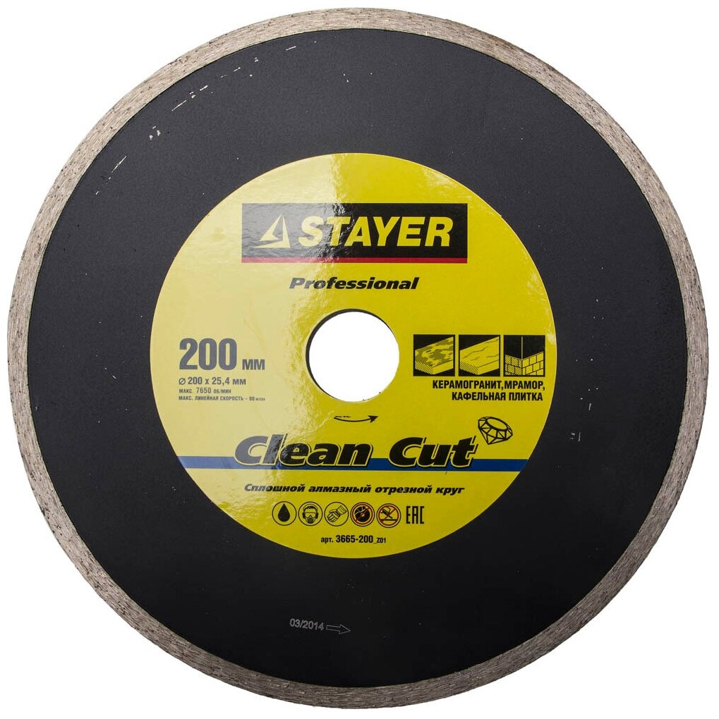 STAYER Сeramo-25, d 200 мм, (25.4 мм, 5 х 2.49 мм), сплошной алмазный диск, Professional (3665-200)