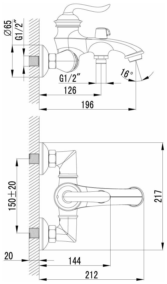 | Длина излива | 196 мм |
