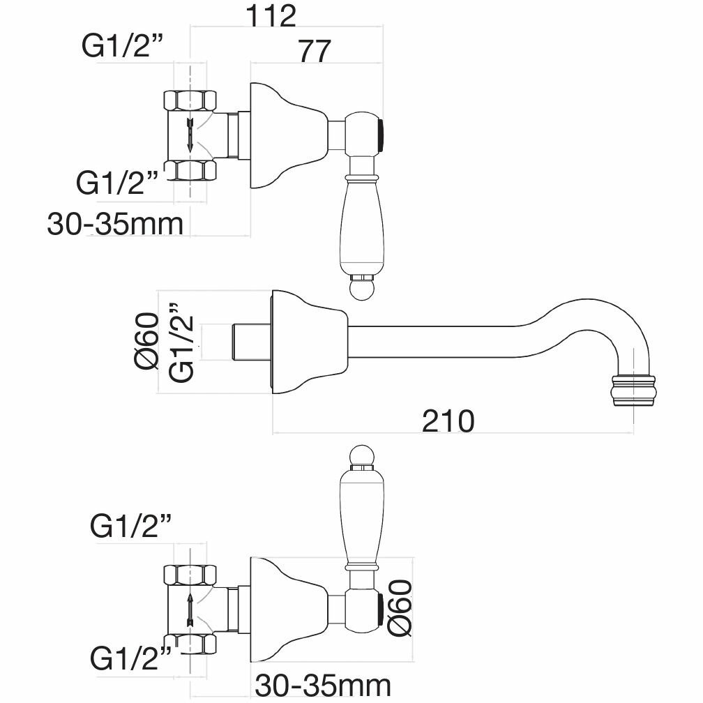 Смеситель на раковину настенный Эверест B46-350 с круглым поворотным изливом, кран-буксы 1/2", хром
