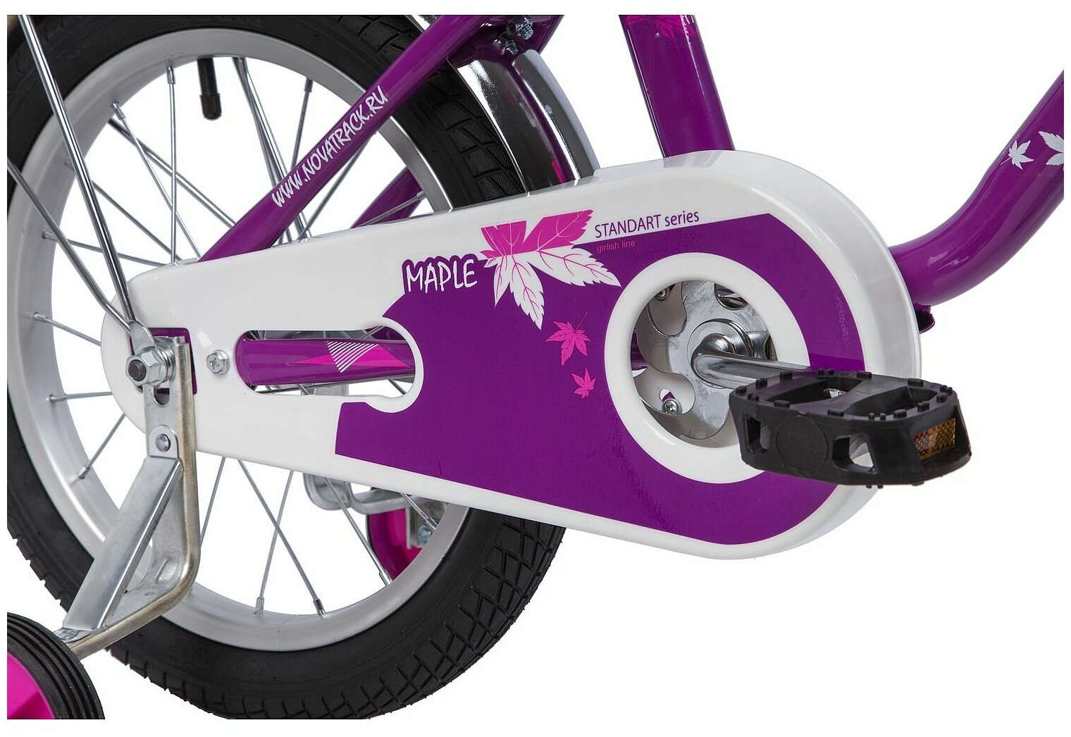 Велосипед NOVATRACK 16" MAPLE, сиреневый, полная защита цепи, тормоз нож.,крылья и багажник хром, пе информация: