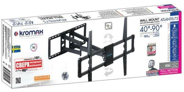 Отзывы на Кронштейн Kromax ATLANTIS-75 black (Наклонно-поворотный для LED TV 40-90, 3 ст. свободы, VESA максимум 800х600 ), нагрузка максимум 101кг