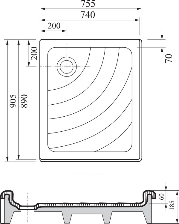 Акриловый поддон 75,5x90,5 см Ravak Aneta EX A003701320