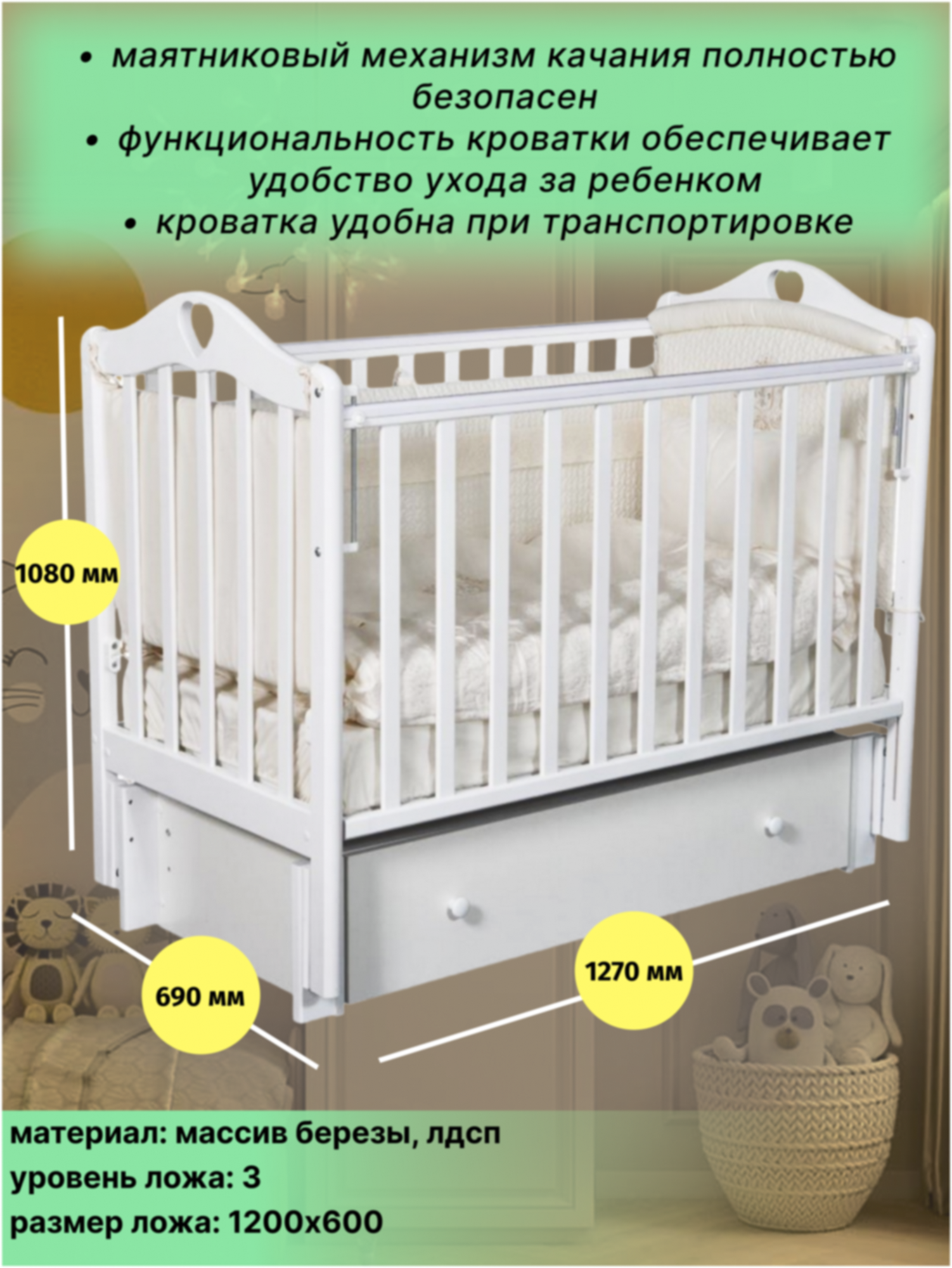 Кроватка Антел Severyanka 3, универсальный маятник, трансформер, трансформер, универсальный маятник