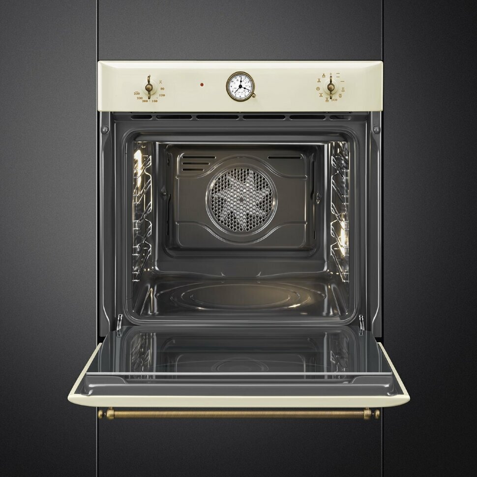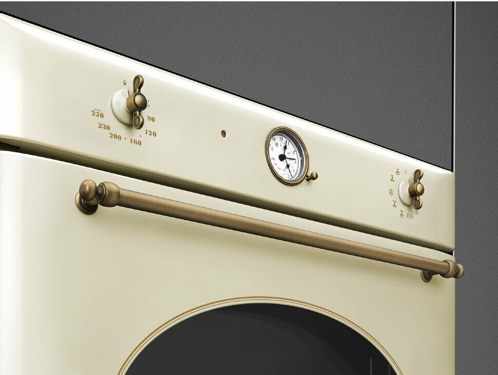 Встраиваемые электрические духовки SMEG/ Coloniale, встраиваемый электрический духовой шкаф, паровая система очистки, кремовый/ фурнитура латунная