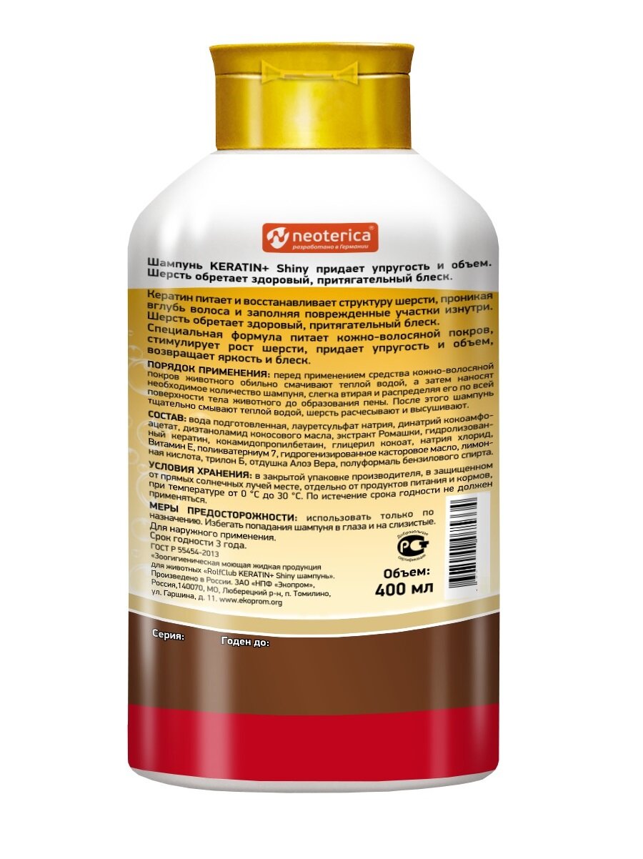 Шампунь для короткошерстных кошек и собак, RolfClub KERATIN+ Shiny, 400 мл информация: