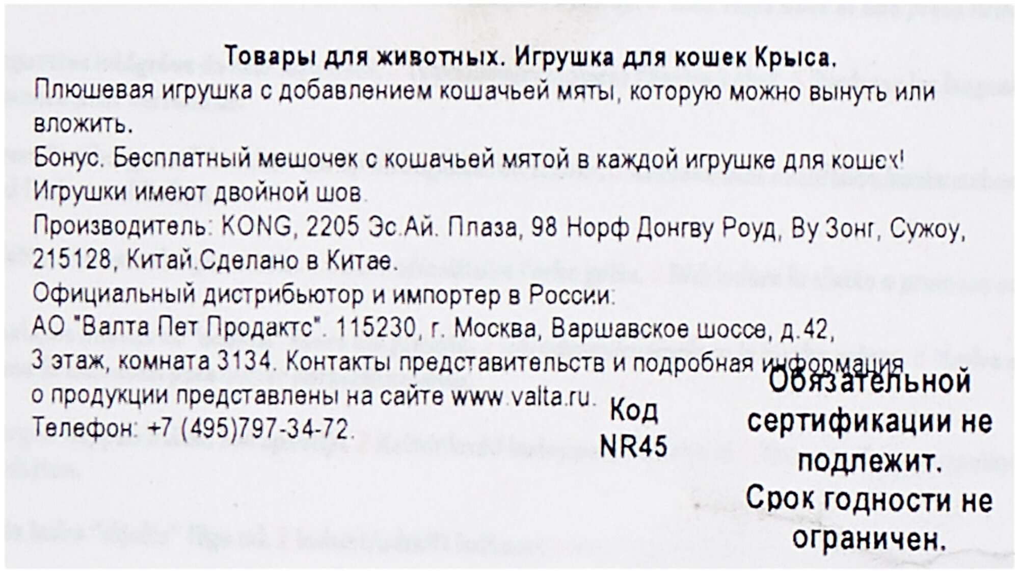 Kong Крыса с тубой для кошачьей мяты (12 см) информация: