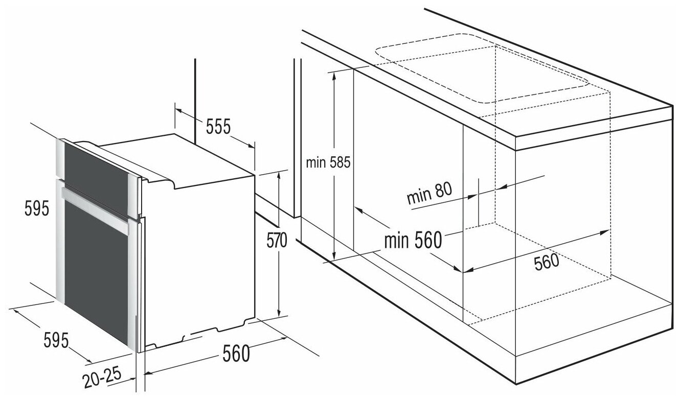 Духовой шкаф встраиваемый LEX EDM 077 C IV, 60 см, с конвекцией, механические ручки, объем 60 л, аналоговый таймер, телескопические направляющие.
